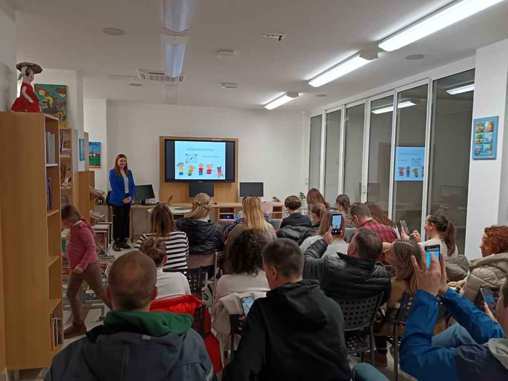 Predavanje je bilo namijenjeno roditeljima djece predškolske dobi te odgajateljicama, a kroz primjere iz prakse i stručna objašnjenja istaknuta je važnost obiteljskog okruženja, svakodnevnih navika i odnosa za zdrav razvoj djeteta s naglaskom na razvoju govora.