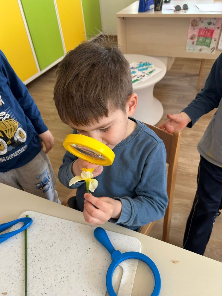 • promatranje pravog cvijeća i traženje „nektara“ pomoću pincete i povećala