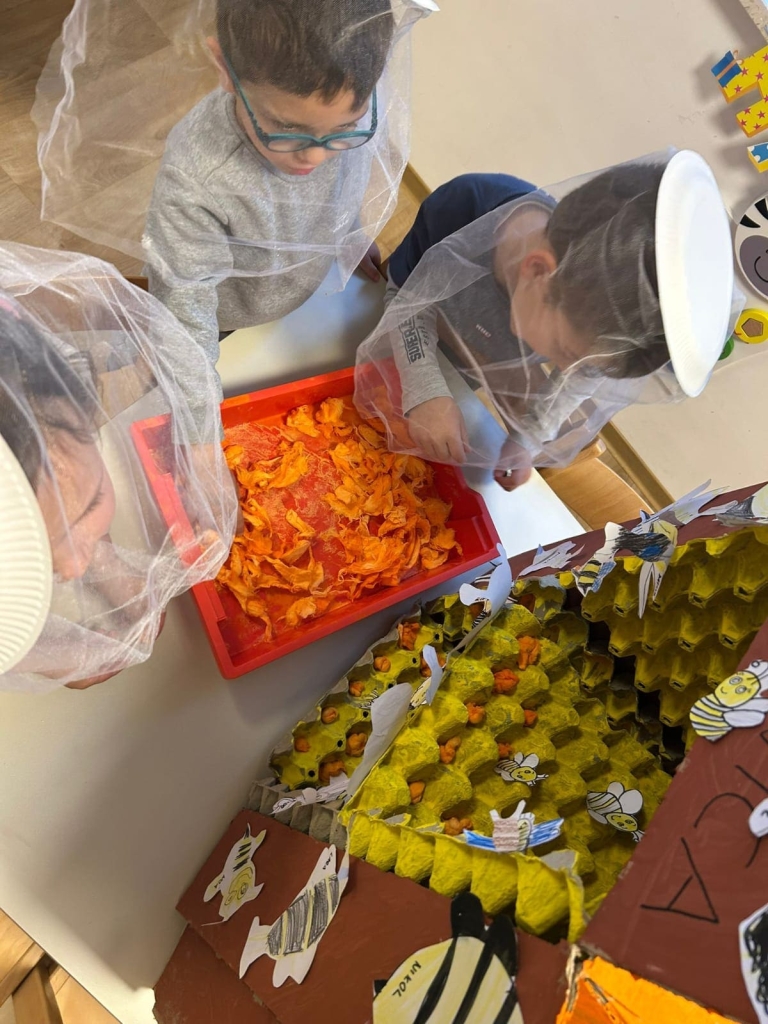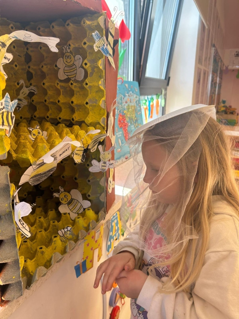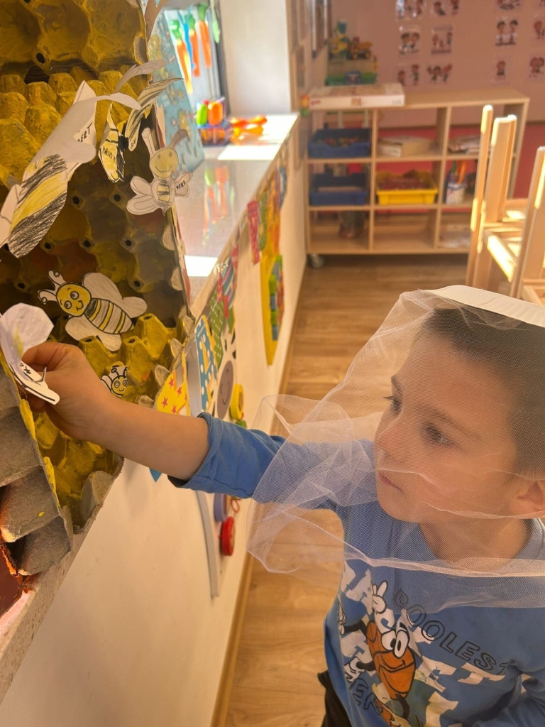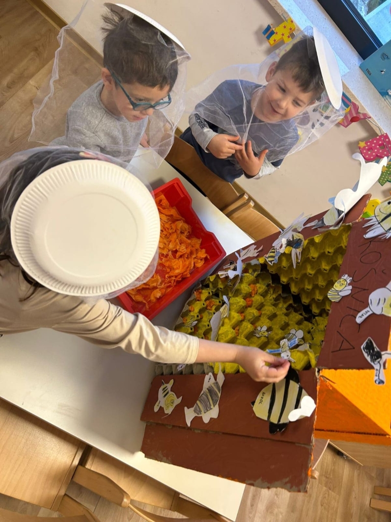 • likovne aktivnosti (otisak ruke – pčela, izrada košnice i nektara)