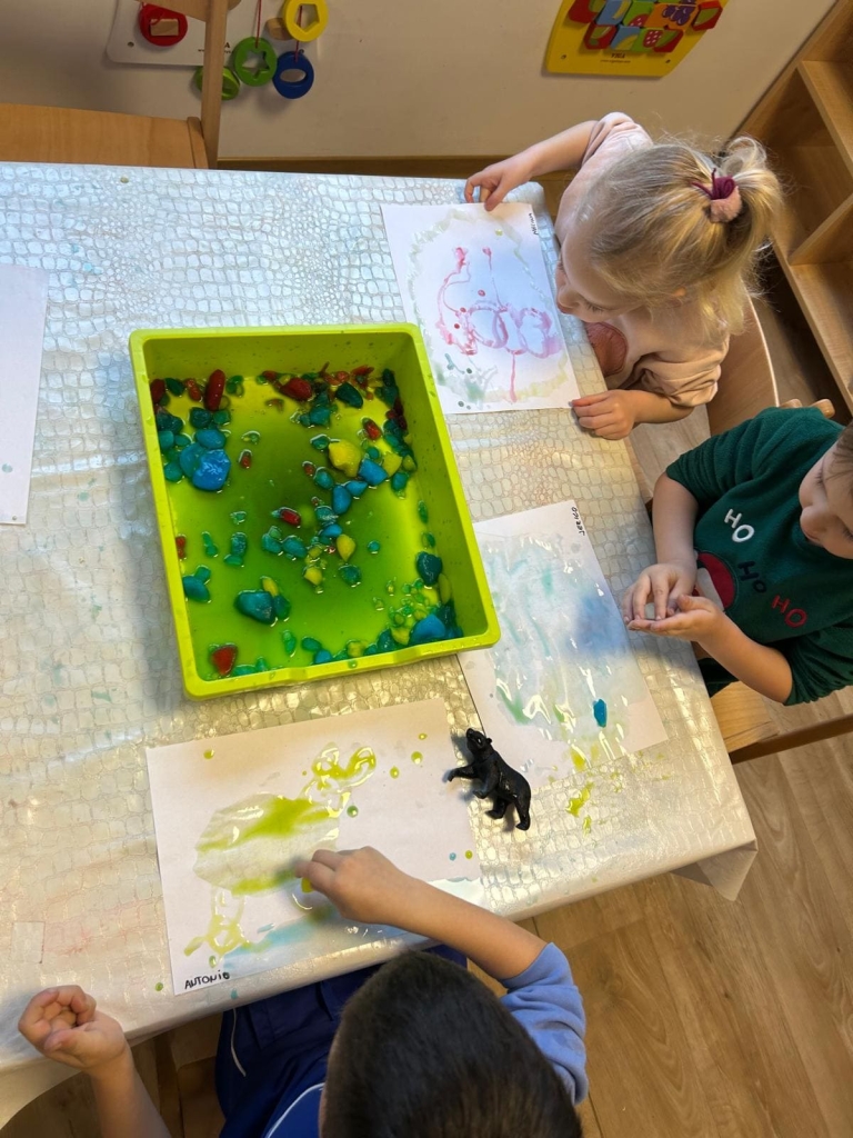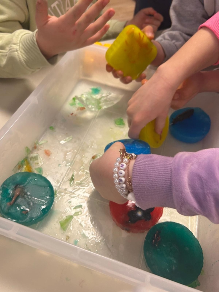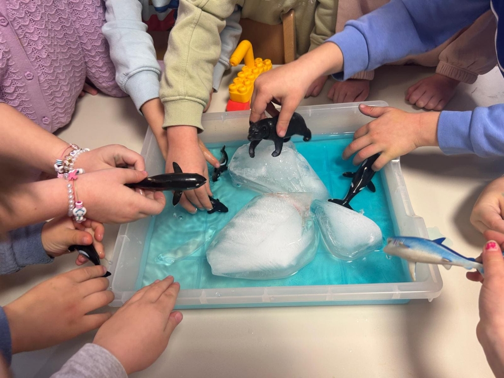 • zamrzavanje vode s bojama i figuricama zimskih životinja