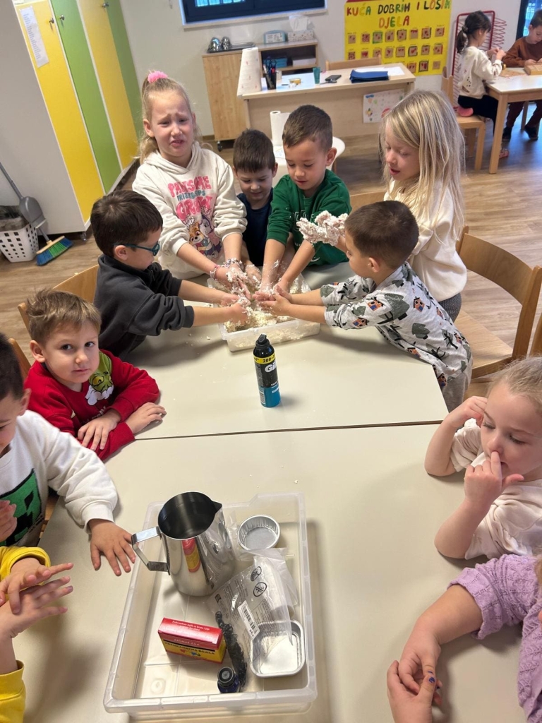 Omogućiti djeci iskustveno učenje o zimskim pojavama kroz istraživanje snijega i leda, poticati znatiželju, opažanje i zaključivanje te razvijati kreativnost, komunikaciju i suradnju.