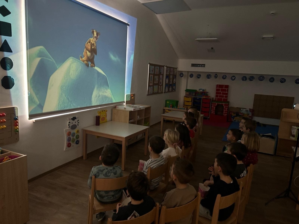• kino-projekcija crtanog filma Ledeno doba u sobi dnevnog boravka