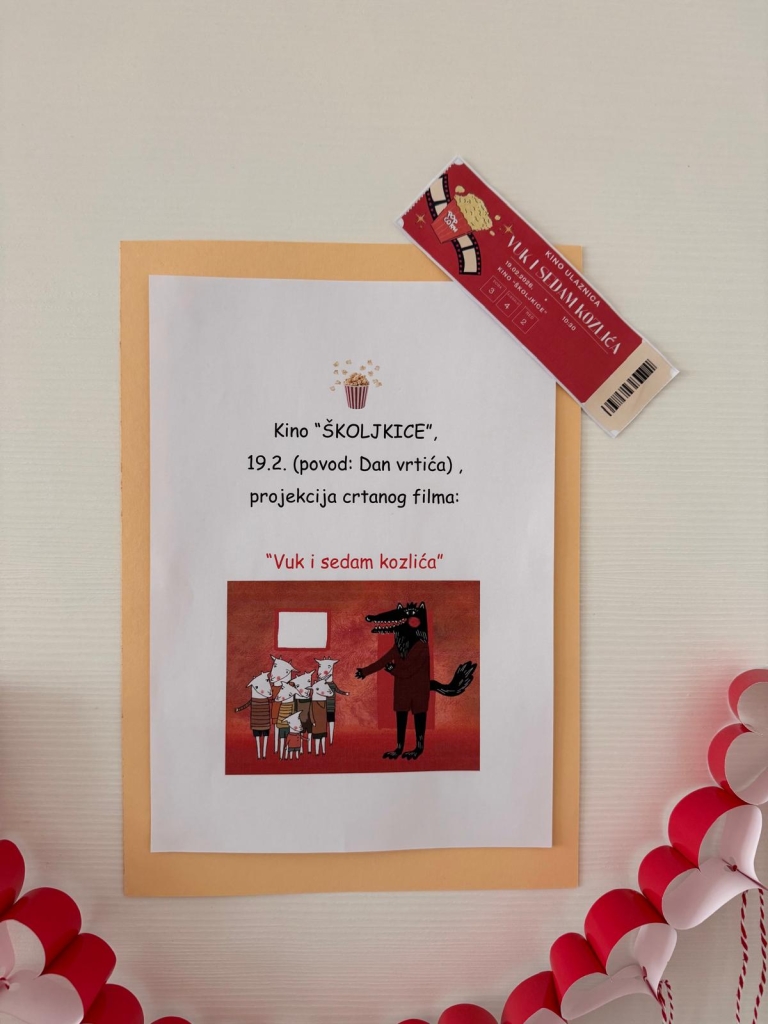 – “Kino dan” (izrada plakata, crtani po dječjem izboru, “prodaja” karata i kokica);